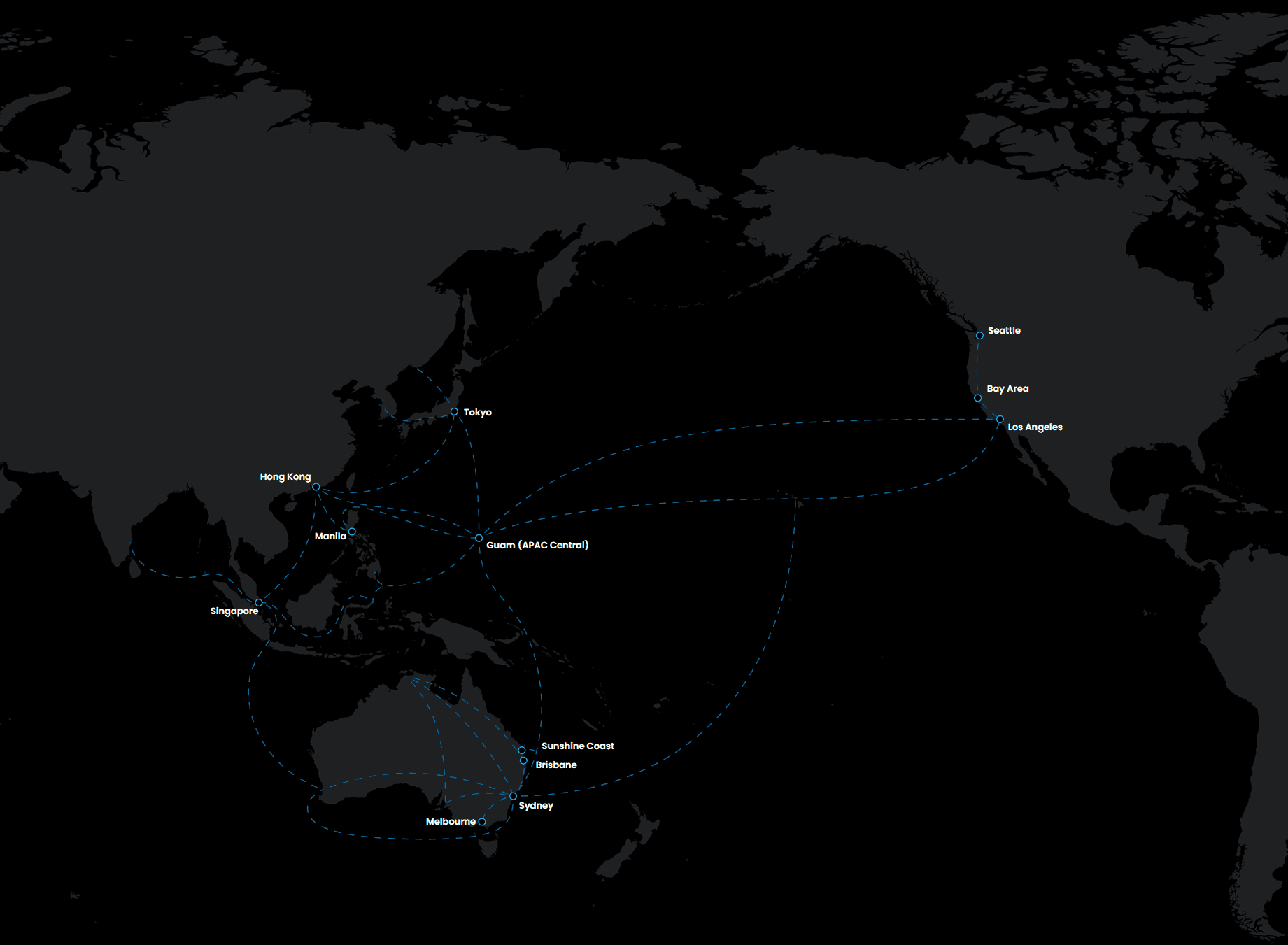 The Sunshine Coast landing station connected us with the United States, Tokyo, Hong Kong, and Singapore, with one pit stop between us and them. But without presences on all sides, we would have to hand off our data.